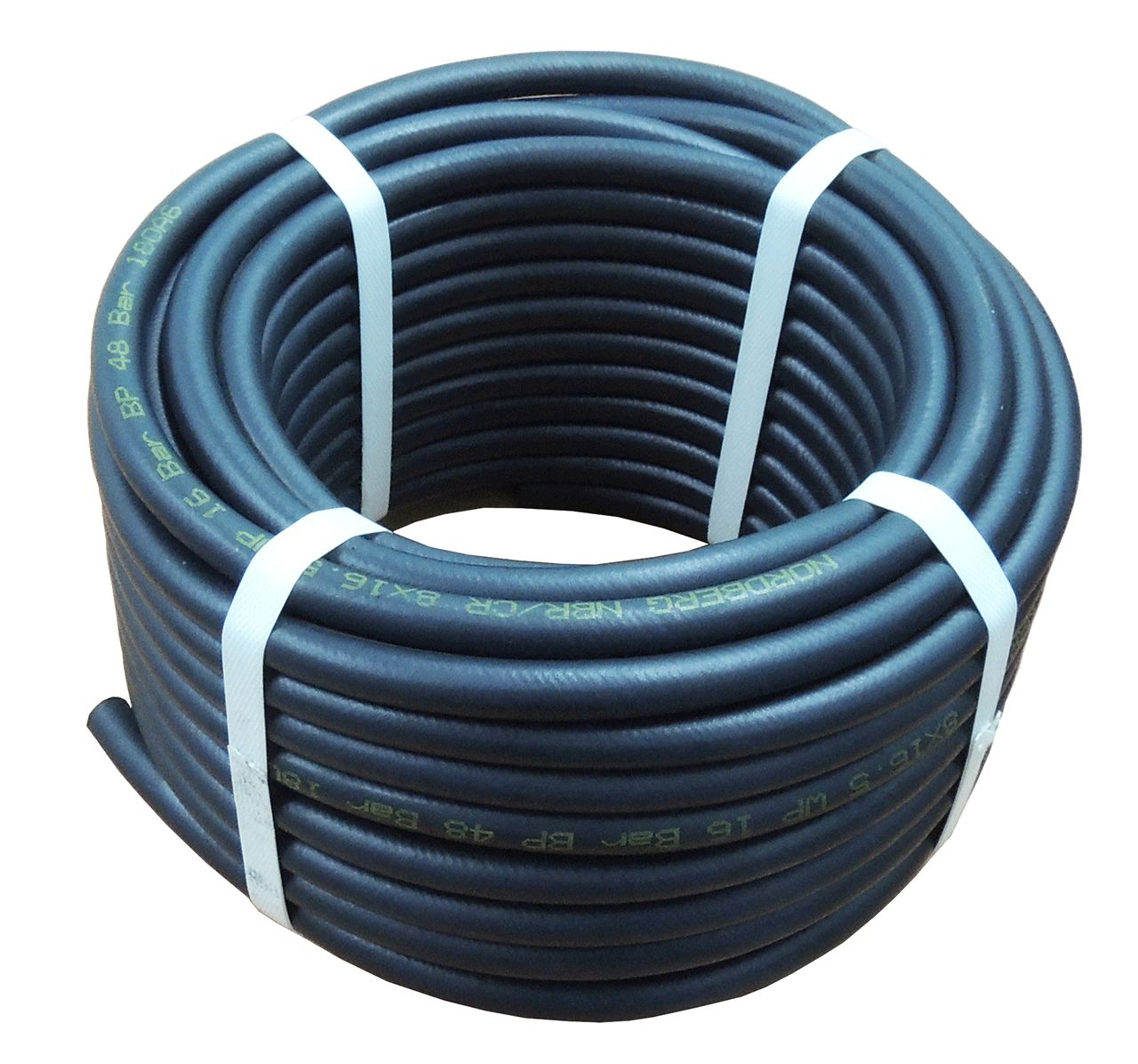 Шланг резиновый с нитяным усилением NBR/CR 8х16,5 мм NORDBERG H816NBR_50 предназначен для подачи под давлением сжатого воздуха, инертных газов, дизельного топлива, бензина, масел, щелочей и кислот (кроме азотной) с концентрацией до 20%. Выдерживает давление до 48 бар и температуру от -50°C до + 90°C