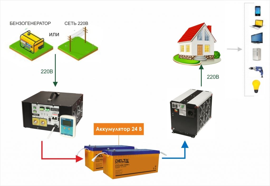 - Возможность автоматического управления работы инвертора с помощью различных реле напряжений, АВР, промконтроллеров и т.п.