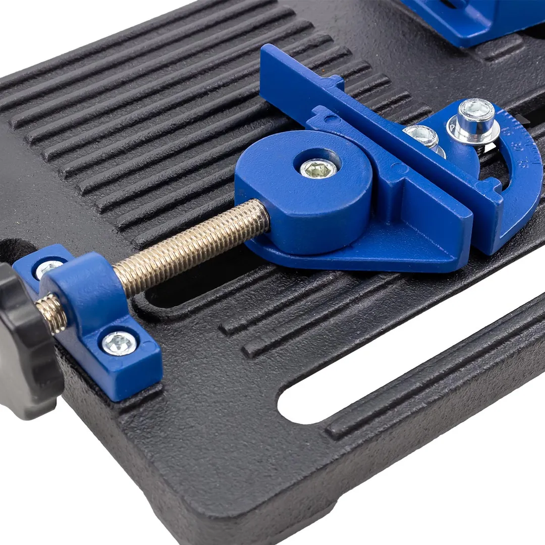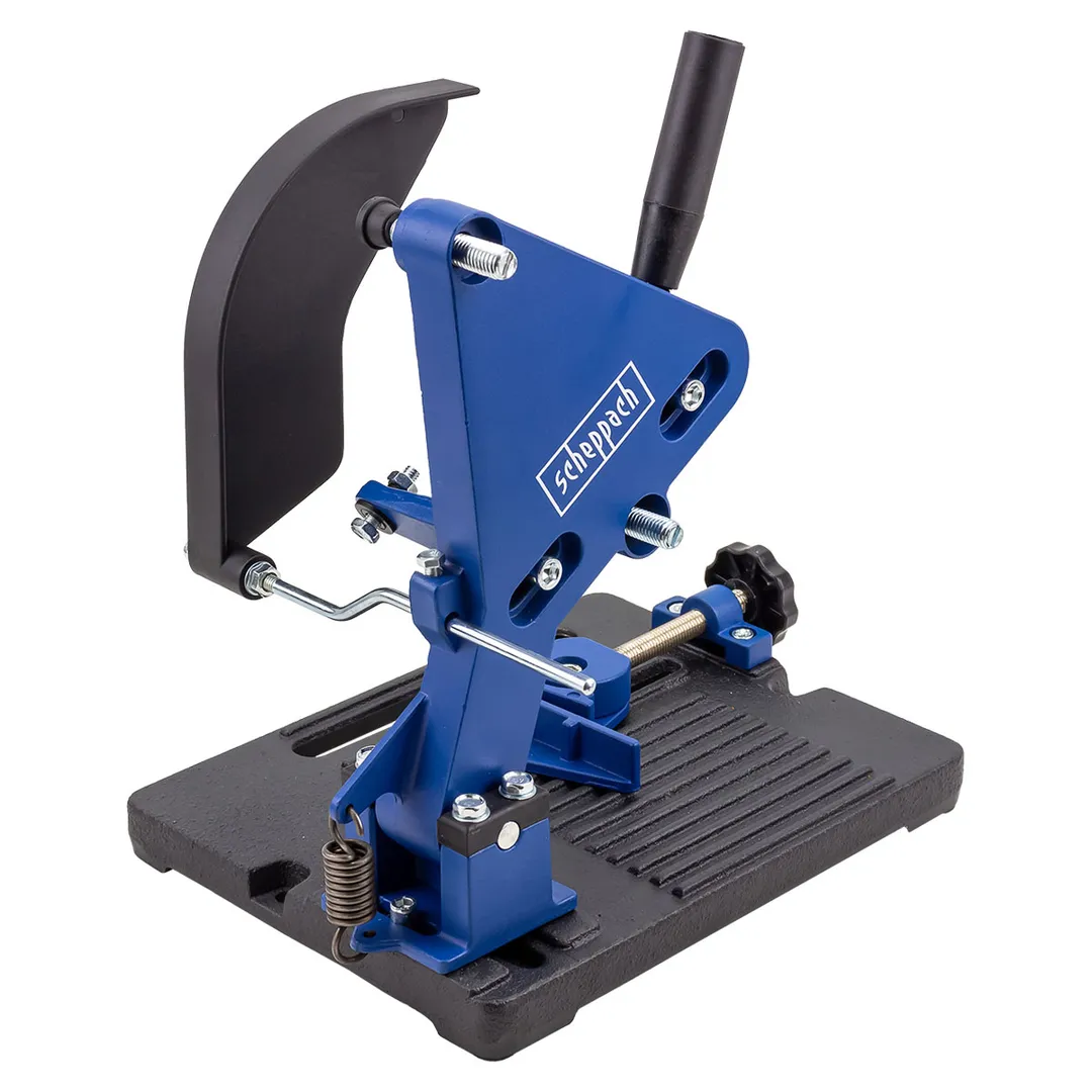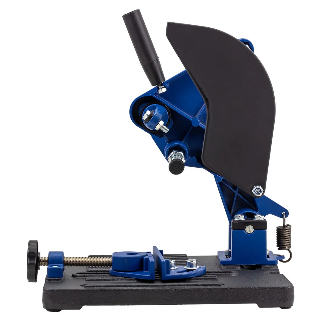 Устройство предназначено для стационарной фиксации угловой шлифовальной машины (болгарки) с диском диаметром 115 или 125 мм. Стойка превращает ручной электроинструмент в подобие отрезного станка, обеспечивая высокую точность и безопасность реза. Используется в домашних мастерских и на небольших производствах для резки металлических труб, уголков, арматуры, а также керамической плитки и камня.