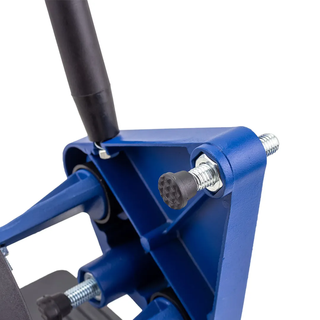 Усиленная конструкция (Массивная станина): Основание и опорные части стойки выполнены из толстостенного металла (обычно не менее 3-4 мм), что исключает вибрации и деформации при нагрузке. Жесткость конструкции напрямую влияет на чистоту реза и безопасность оператора.