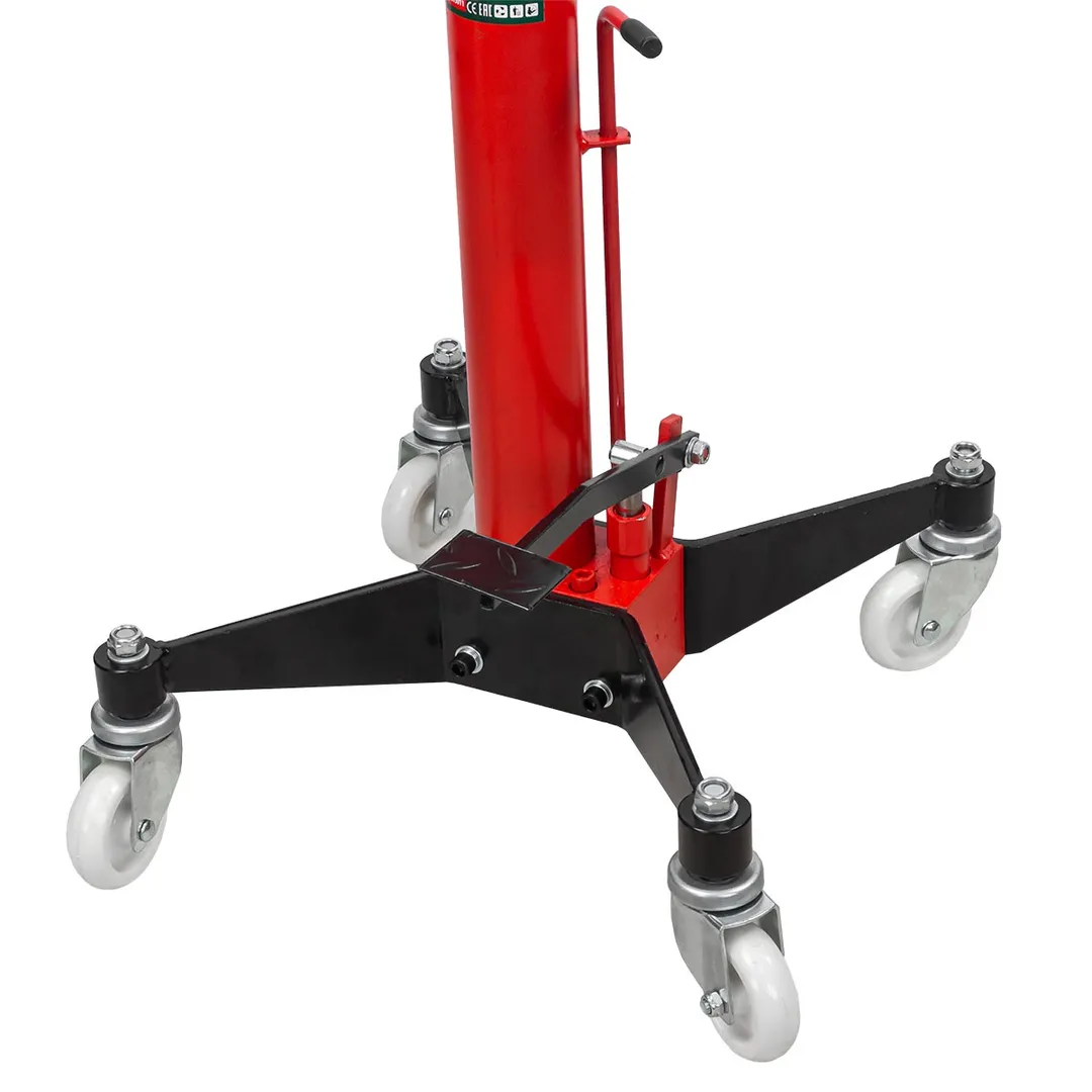 Стойка трансмиссионная гидравлическая г/п 1500 кг. Применяется для монтажа или демонтажа КПП и также всевозможных элементов выхлопной системы, защиты поддона картера. Благодаря этому устройству можно эффективно проводить работы по починке автомобилей на станциях технического обслуживания. Подъем осуществляется при помощи ножного насоса, опускание путем откручивания клапана вручную. Подъем и опускание дозировано с предельной точностью.