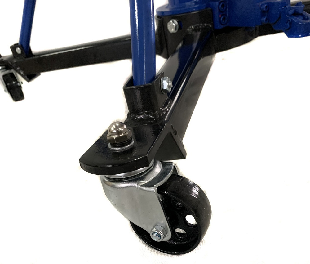 - Четыре независимых поворотных колеса позволяют легко перемещать агрегаты по цехам и другим помещениям.