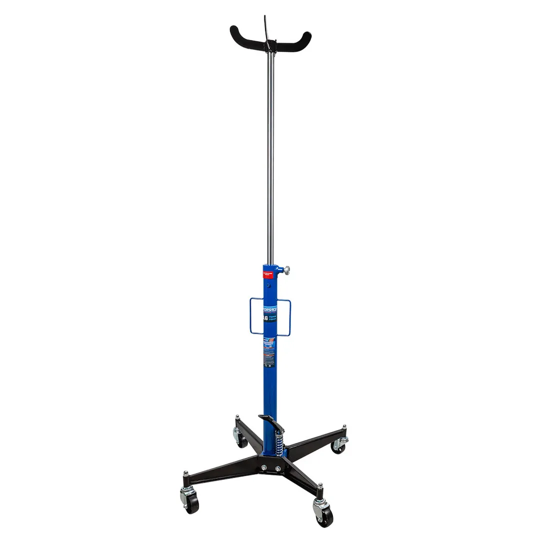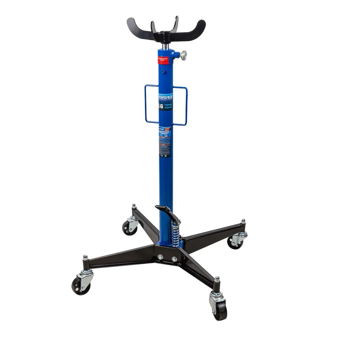 Стойка трансмиссионная гидравлическая применяется для монтажа или демонтажа КПП и также всевозможных элементов выхлопной системы, защиты поддона картера. Подъем осуществляется при помощи ножного насоса, опускание путем откручивания клапана вручную. Подъем и опускание дозировано с предельной точностью.