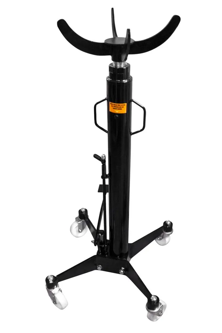 Стойка трансмиссионная гидравлическая значительно облегчает монтажные работы коробок переключения передач, топливных баков и шасси, а также замены подшипников на подъемной платформе и идеально подходит для использования в автомастерских или гаражах. Благодаря компактной конструкции и четырем колесам с плавным ходом (четыре колеса, поворотные ролики с шарикоподшипниками) трансмиссионную стойку можно легко закатить под автомобиль и поднять на нужную высоту с помощью удобной педали. Поршень снабжен четырехлепестковым захватом. Высота подъема может быть зафиксирована на любой высоте от 113 до 191,5 см., что позволяет легко поднимать грузы до 1500 кг. Скорость опускания плавно регулируется. Подъем педалью, опускание маховиком.