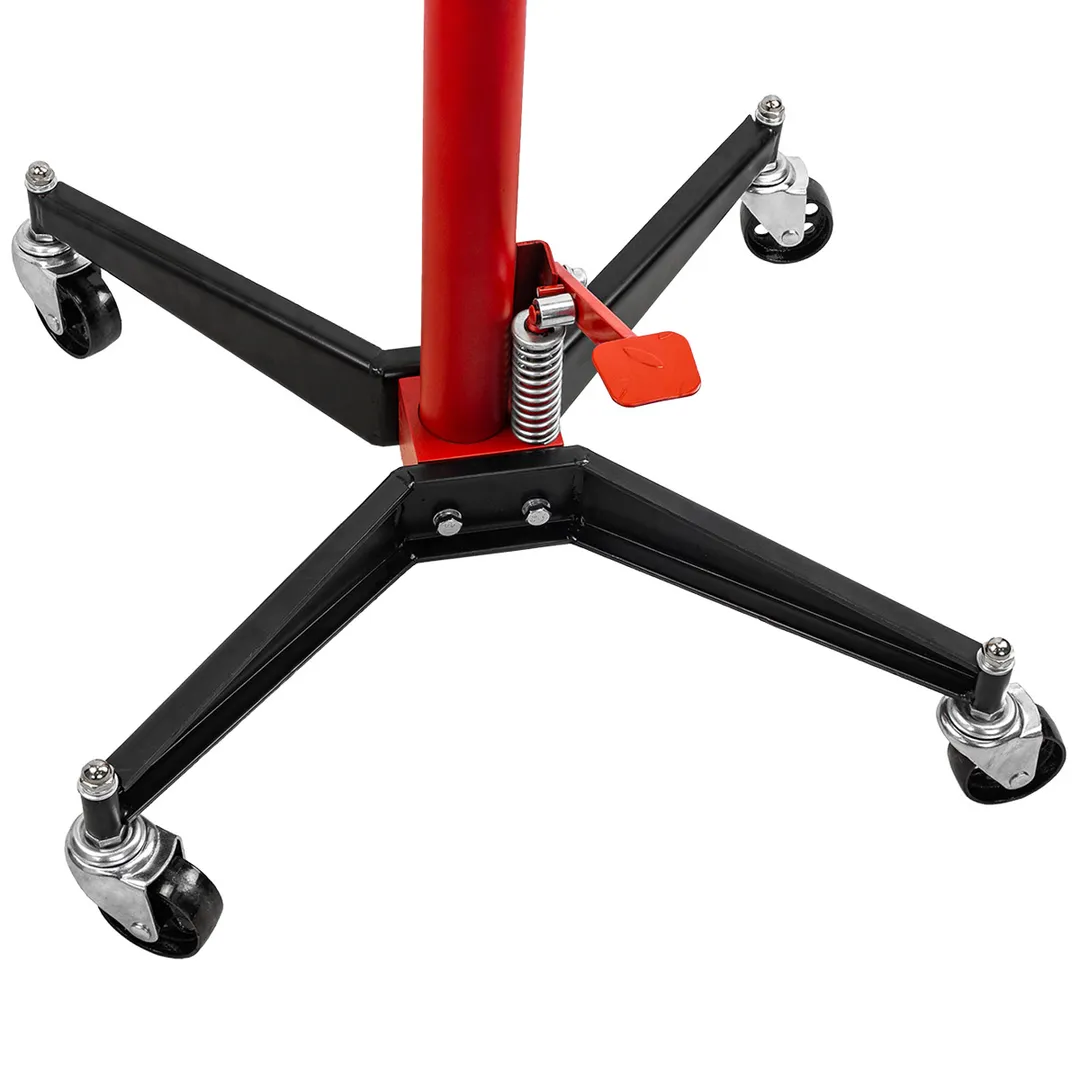 Стойка трансмиссионная гидравлическая применяется для монтажа или демонтажа КПП и также всевозможных элементов выхлопной системы, защиты поддона картера. Поставляется в комплекте с дополнительным адаптером для снятия КПП. Адаптер имеет разборную конструкцию, он легко устанавливается на рабочий шток и надёжно закрепляется. Благодаря этому устройству можно эффективно проводить работы по починке автомобилей на станциях технического обслуживания. Подъем осуществляется при помощи ножного насоса, опускание путем откручивания клапана вручную. Подъем и опускание дозировано с предельной точностью.