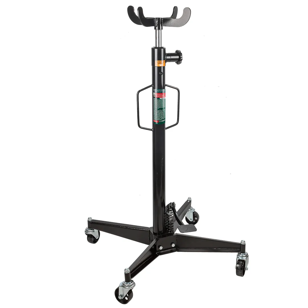 Стойка трансмиссионная гидравлическая г/п 500 кг. Применяется для монтажа или демонтажа КПП и также всевозможных элементов выхлопной системы, защиты поддона картера. Поставляется в комплекте с дополнительным адаптером для снятия КПП. Адаптер имеет разборную конструкцию, он легко устанавливается на рабочий шток и надёжно закрепляется. Благодаря этому устройству можно эффективно проводить работы по починке автомобилей на станциях технического обслуживания. Подъем осуществляется при помощи ножного насоса, опускание путем откручивания клапана вручную. Подъем и опускание дозировано с предельной точностью.