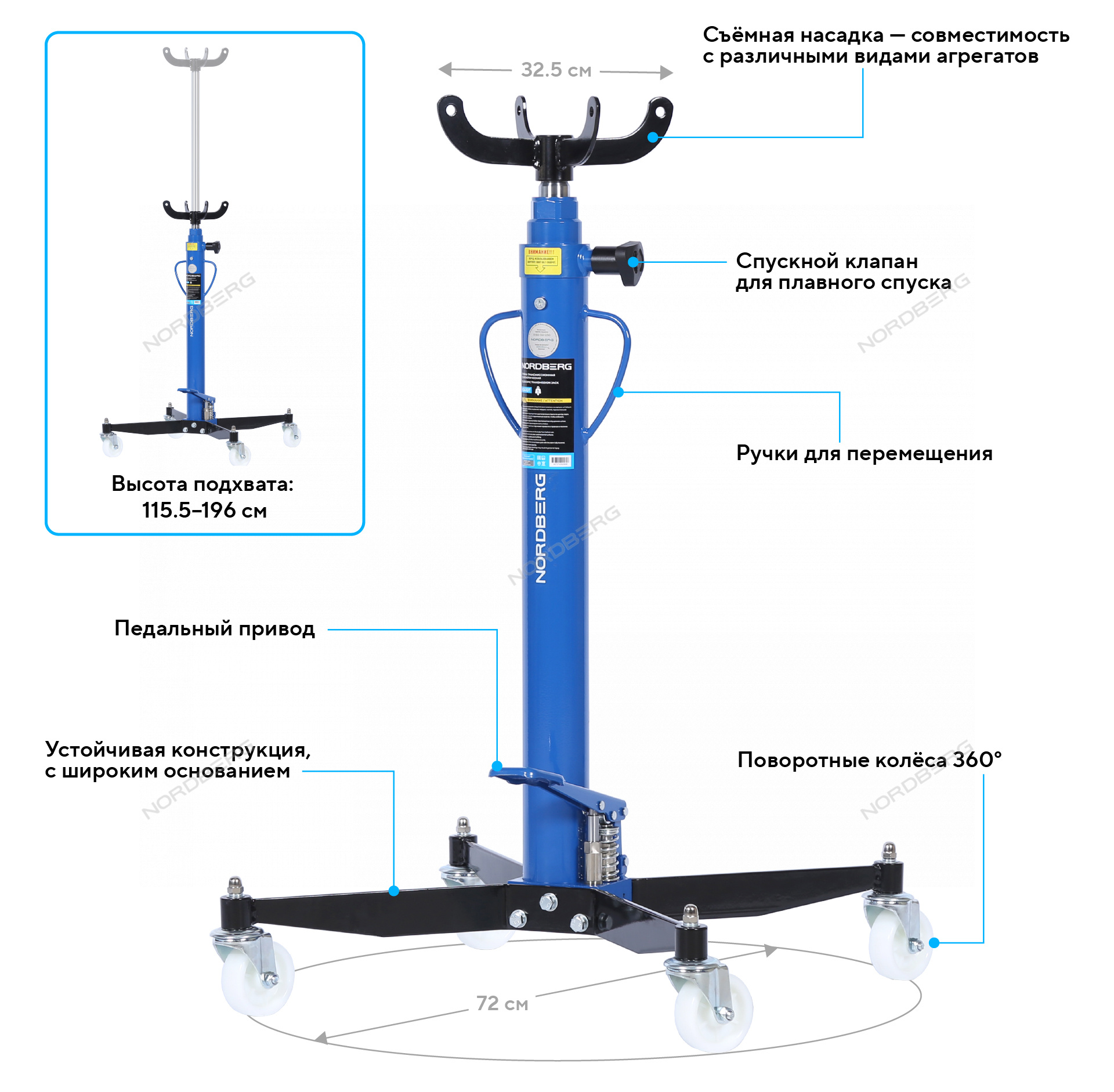 Трансмиссионная стойка, предназначенная для подъёма, удержания и перемещения агрегатов, таких как КПП и мосты, с возможностью фиксации и удобного перемещения по рабочей зоне.