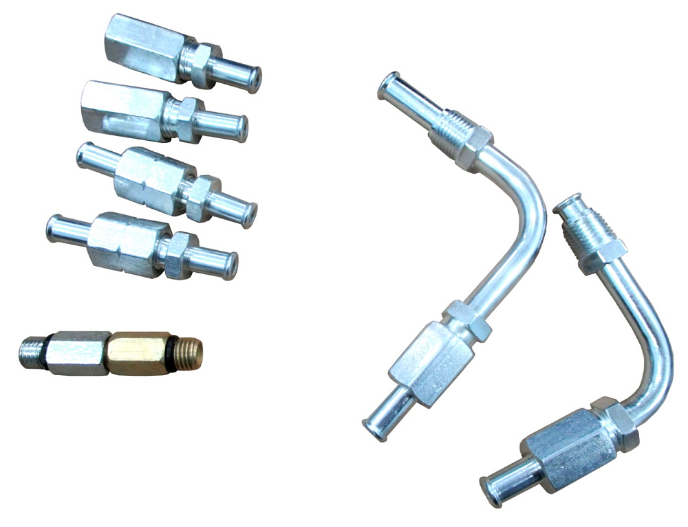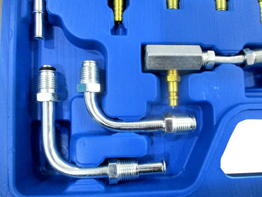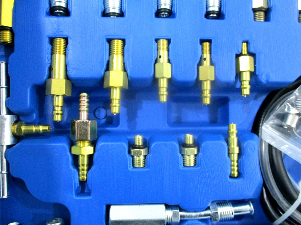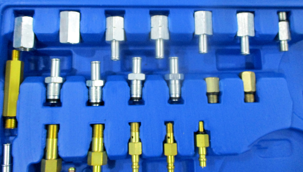 В комплекте манометр 3 – 1/2 дюйма (шкала от 0 до 10 атм.), 40 адаптеров и шлангов разной длины и формы – практически под все существующие автомобили.