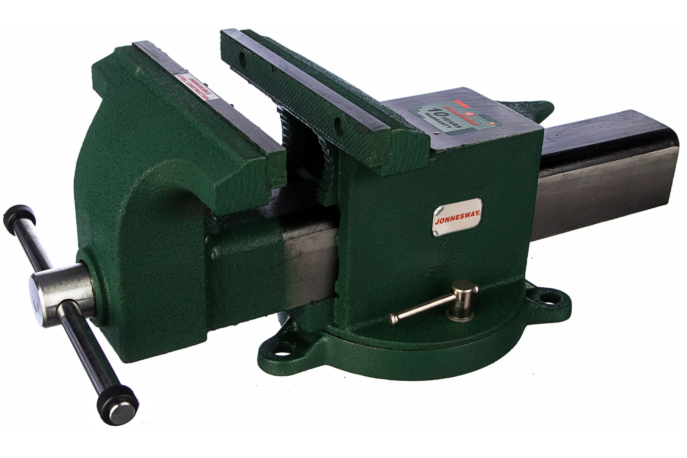 Тиски слесарные поворотные, 200 мм. Тиски Jonnesway изготовлены из материалов и по технологиям, которые в полной мере обеспечивают работоспособность и прочность приспособления, согласно предъявляемым требованиям при использовании данных изделий в мастерских, цехах и ремонтных предприятиях.