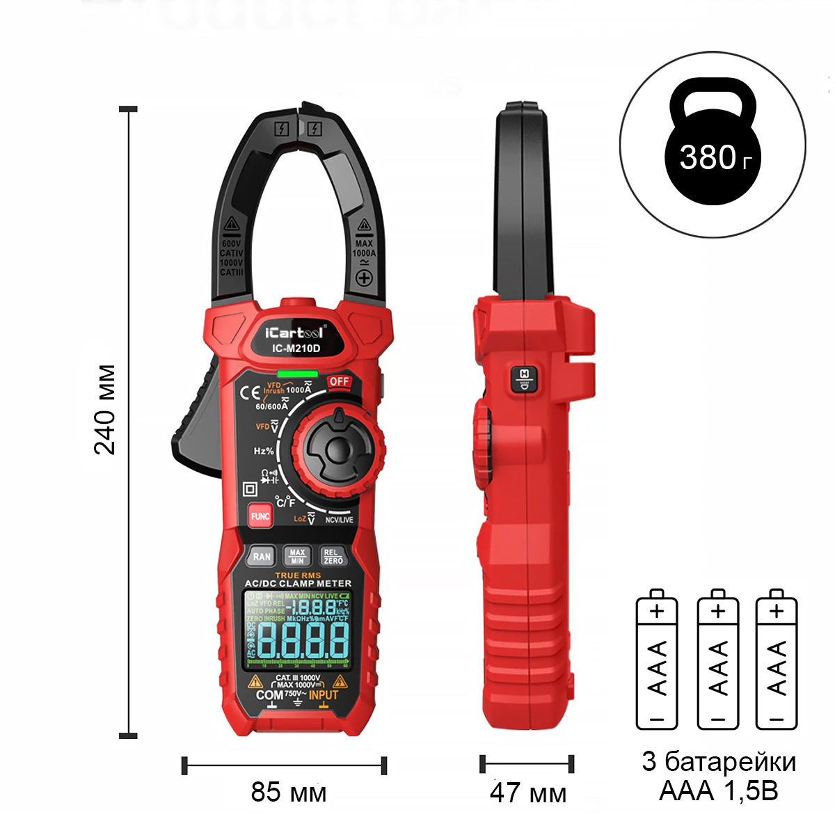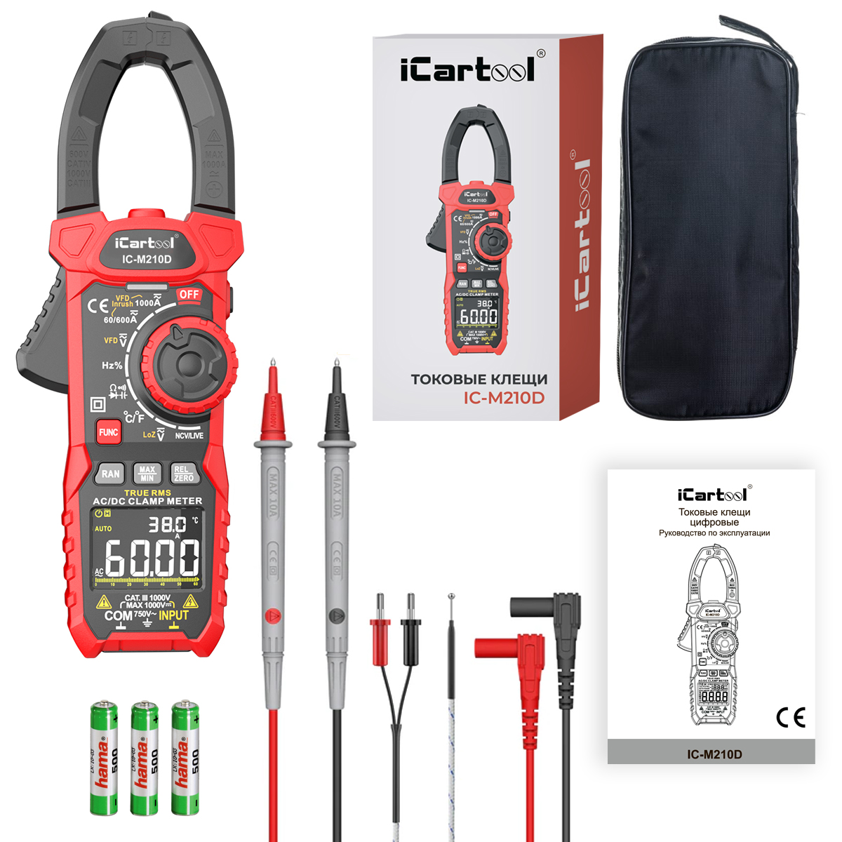 Токовые клещи iCartool IC-M210D позволяют измерить постоянный и переменный ток до 1000А, в том числе в режиме Inrush (большие пусковые токи). Имеют высокий рейтинг электробезопасности CAT III 1000V, CAT IV 600V, высокую точность и стабильность измерений. Также эти клещи представляют продвинутый мультиметр с широким набором функций, в том числе с функциями VFD и LoZ.