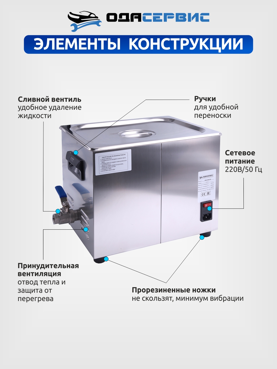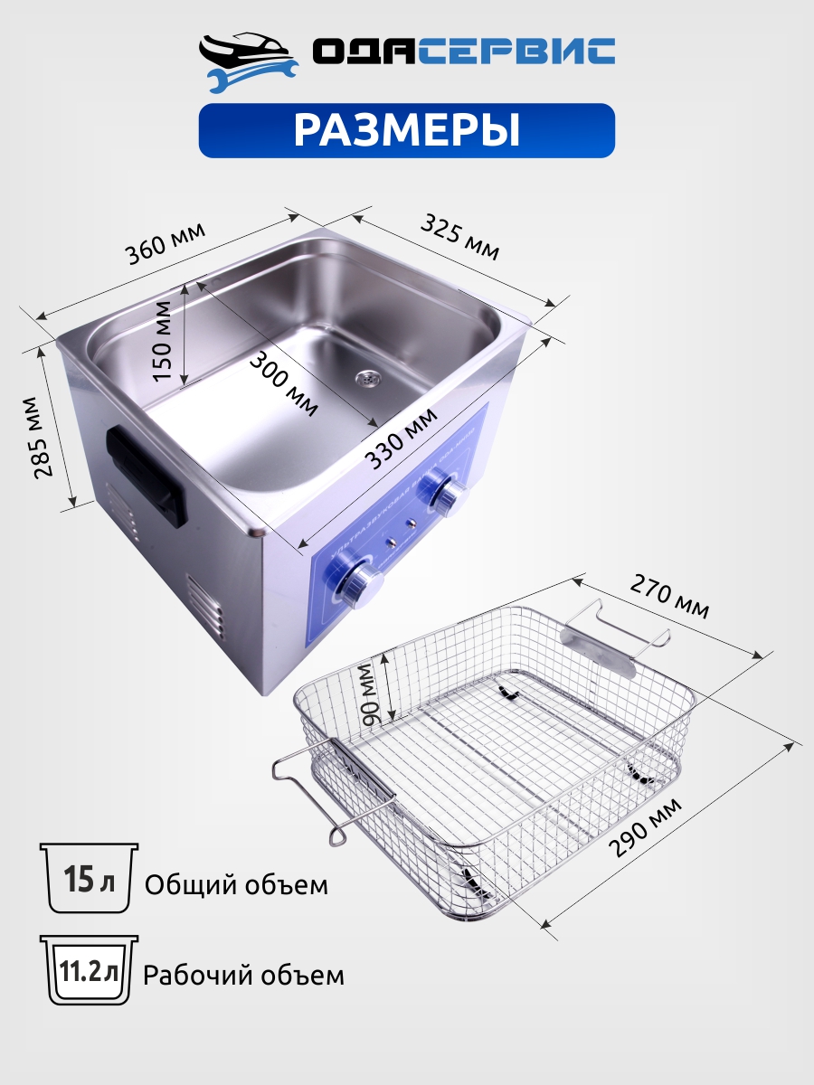 *Обратите внимание: объем ванны указанный в Наименовании, заводом изготовителем, рассчитывается по формуле ДхШхГ, где Д (длина) и Ш (ширина) измеряются по верхней внутренней границе бака, Г ( глубина) максимальное расстояние от верхней кромки бака до его дна. Реальный объем ванны в литрах, отличаться от заявленного, т.к. конструкция бака конусообразная. При выборе ультразвуковой ванны ориентируйтесь на ее рабочий объем.