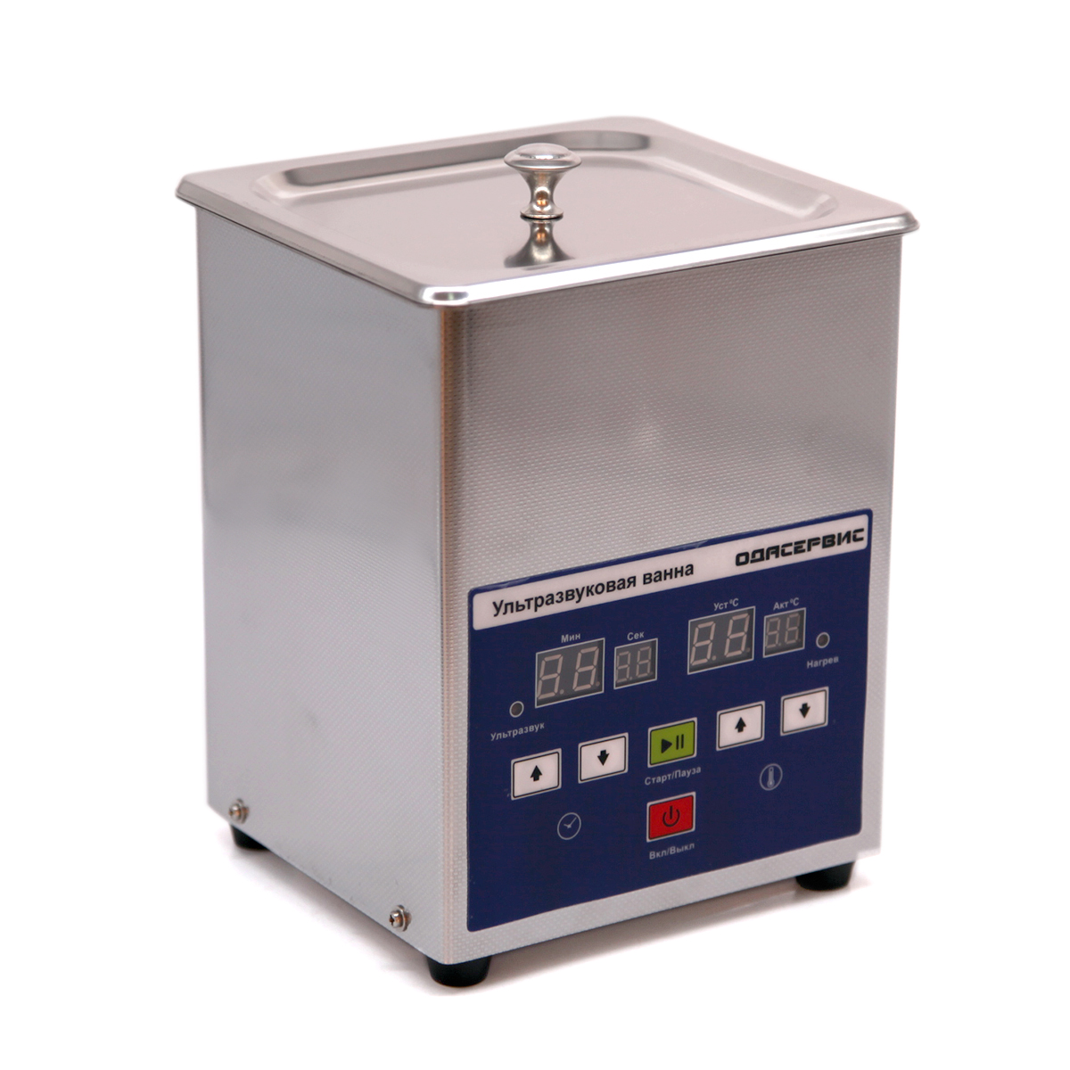 В данной ванне нагрев рабочей жидкости варьируется от 0 до 80 °С. Нагрев в процессе УЗ-очистки необходим для ускорения химических процессов. Повышается КПД и сокращается время обработки предметов. - Таймер