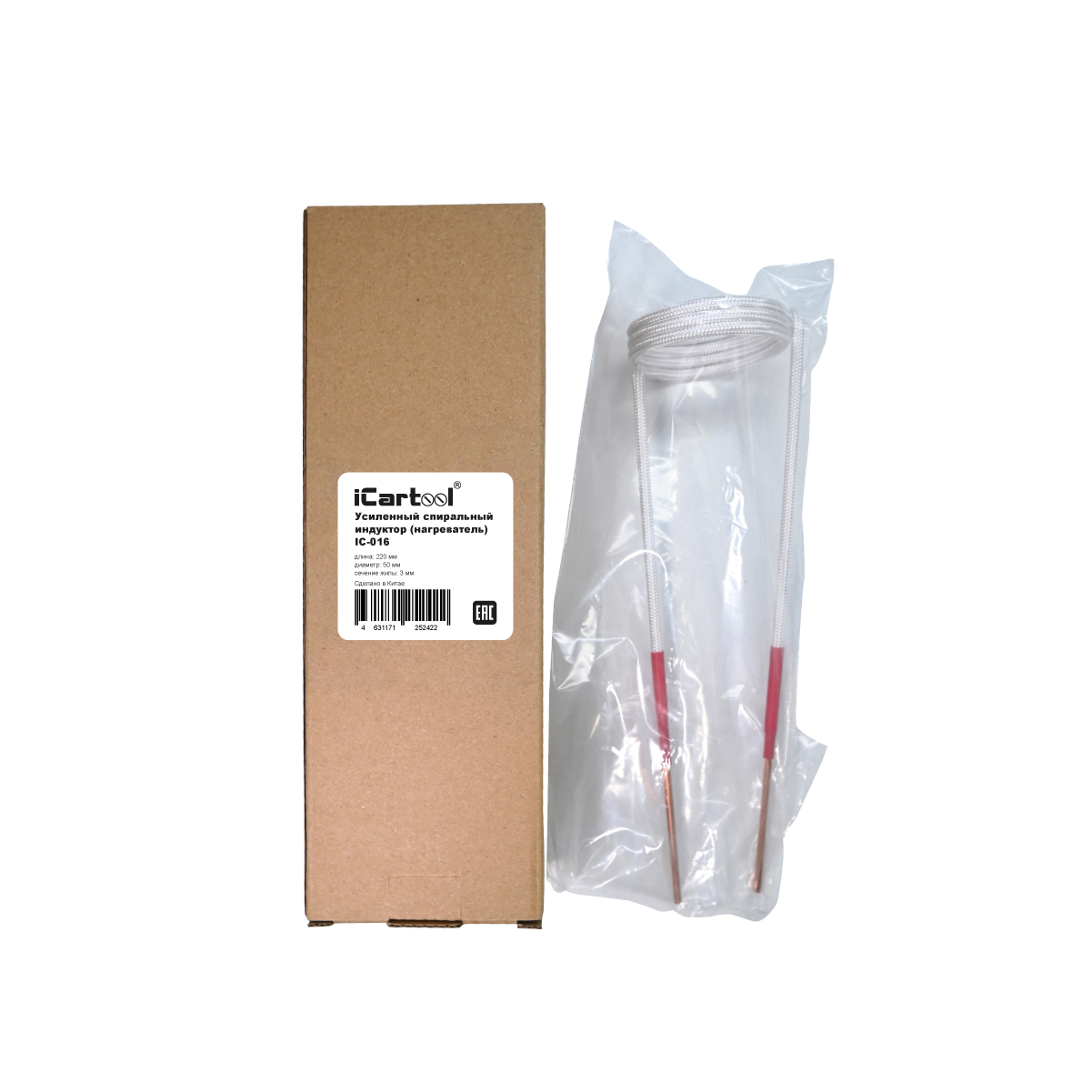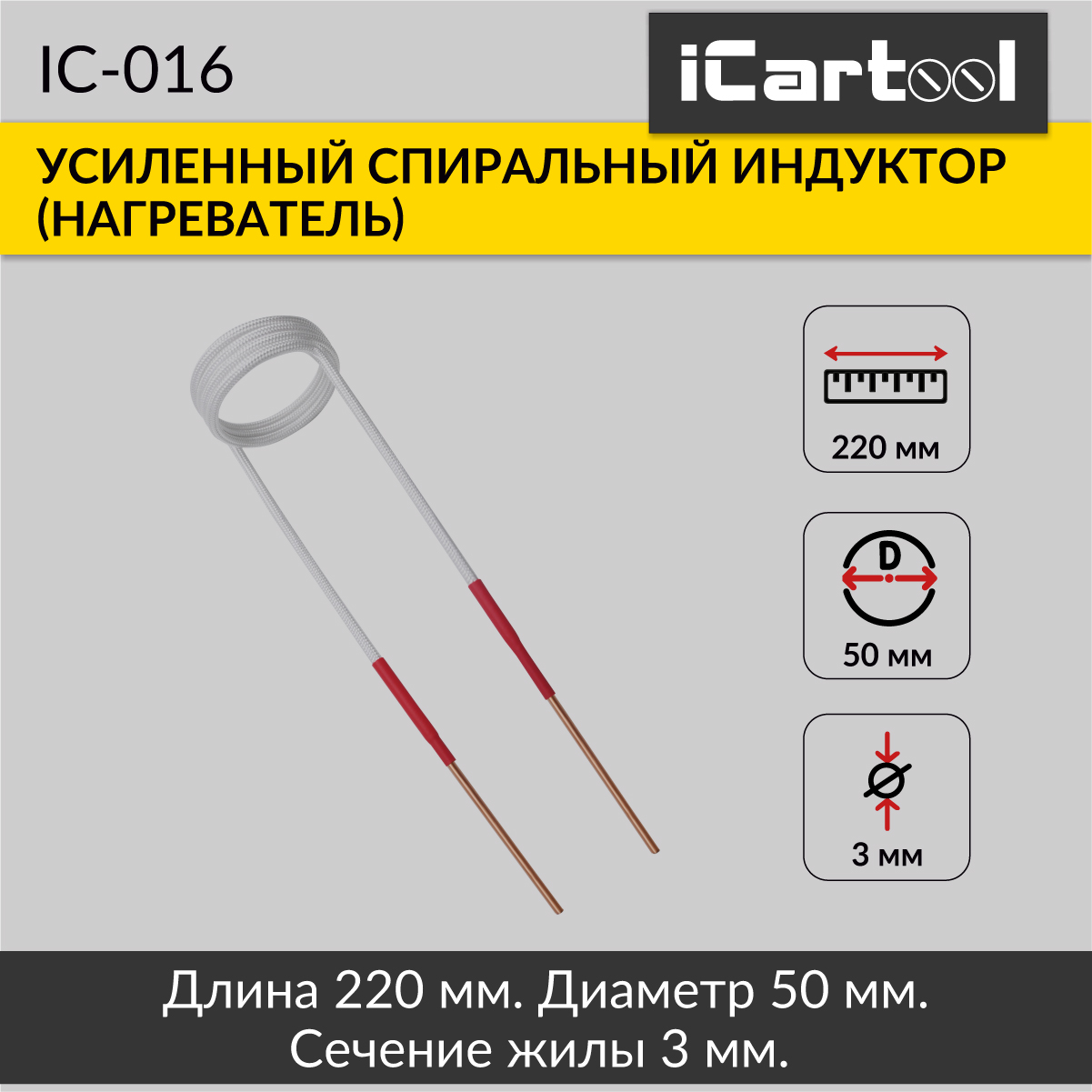 Усиленный спиральный индуктор (нагреватель) длиной 220 мм. диаметр 50 мм. Температура нагрева до 1000 градусов