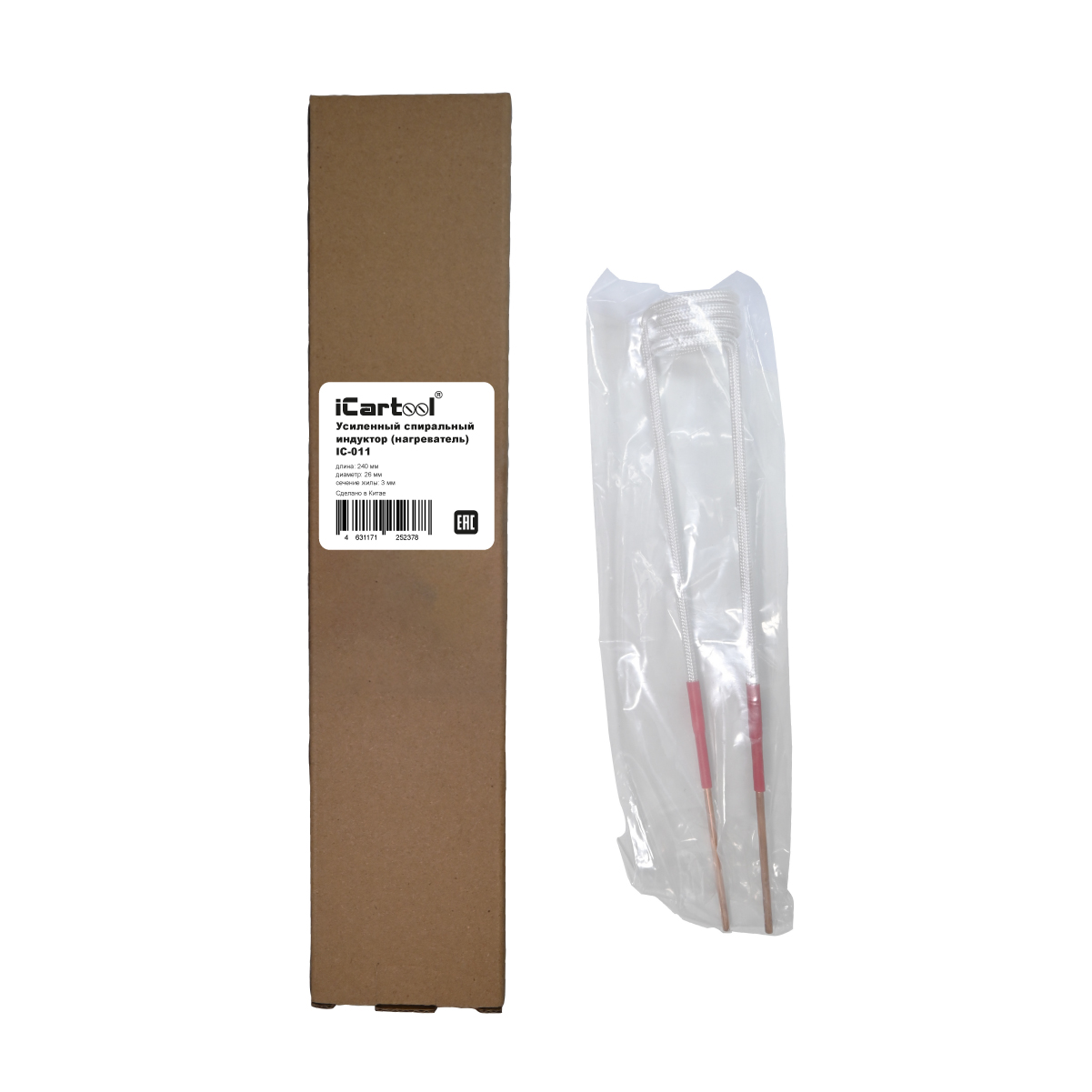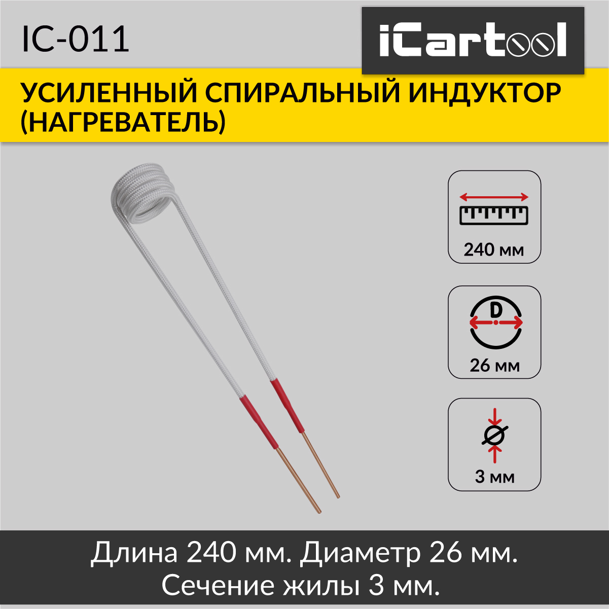 Усиленный спиральный индуктор (нагреватель) длиной 240 мм. диаметр 26 мм. Температура нагрева до 1000 градусов