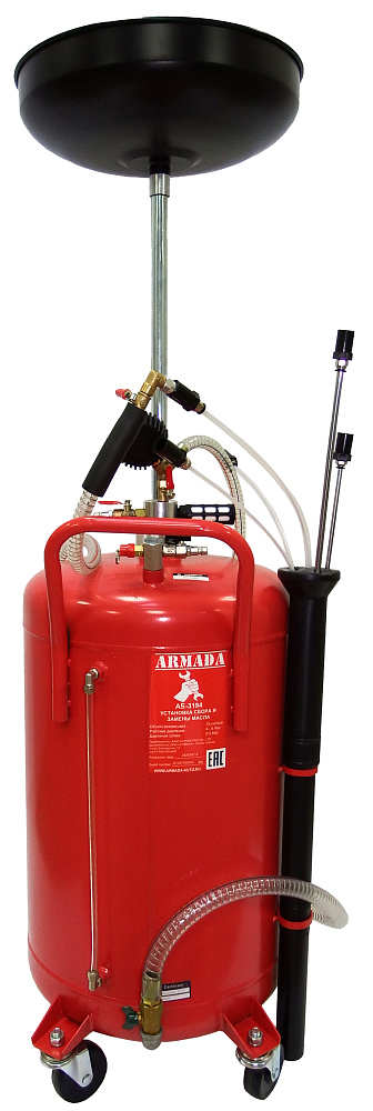 Установка для сбора и замены масла AS-3194 ARMADA – это высококачественное оборудование, предназначенное для быстрого и эффективного сбора и замены масла в автомобилях посредством вакуумирования через щупы (зонды). Установка имеет уровнемер и оснащена большими малошумными колесами для ее удобного перемещения по рабочей зоне.