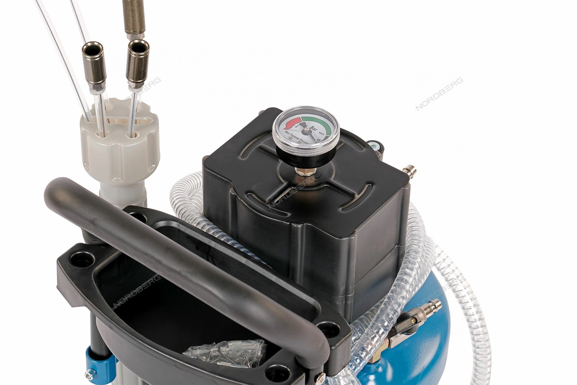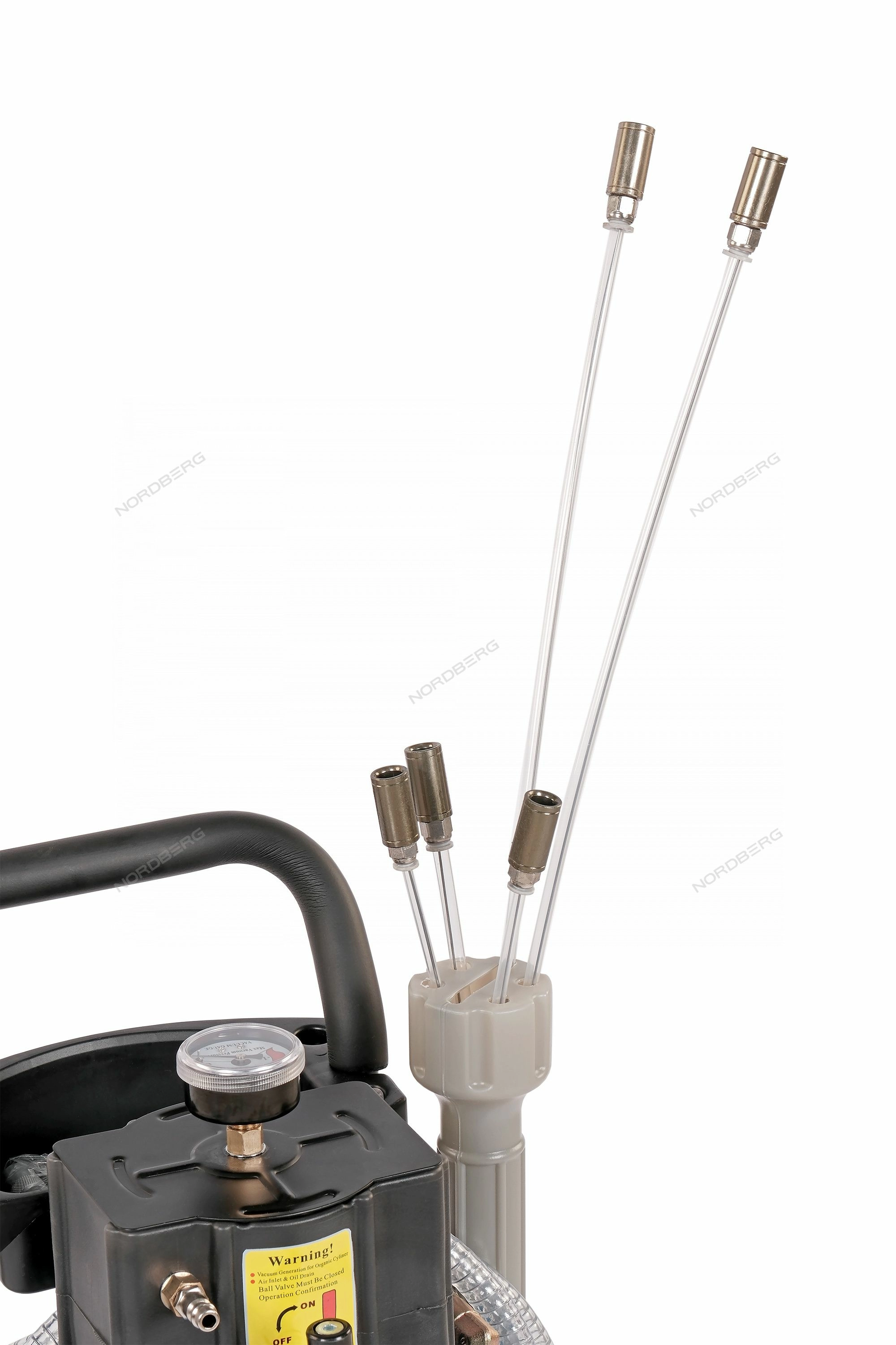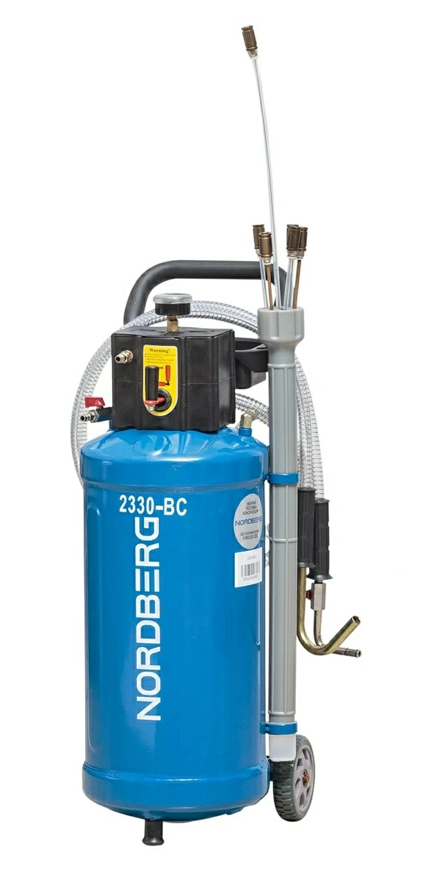 Компактная, маневренная и простая в эксплуатации установка для замены масла NORDBERG 2330-BC (2330G) удаляет отработанное масло и другие жидкости из любого транспортного средства при помощи вентури-вакуумной вытяжной системы.