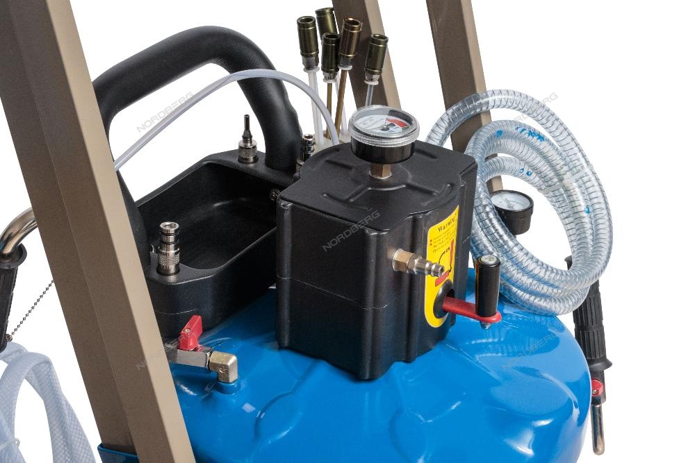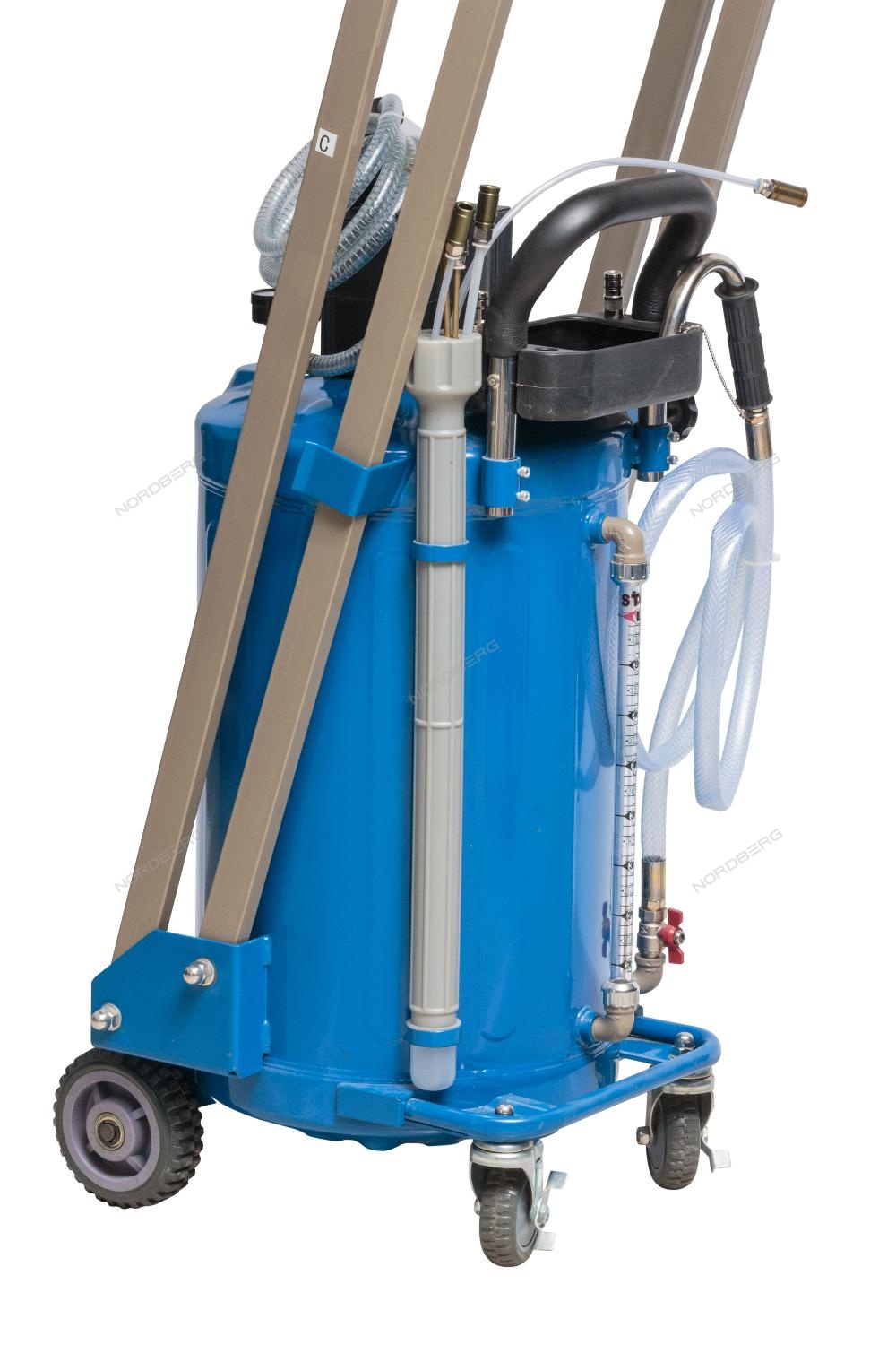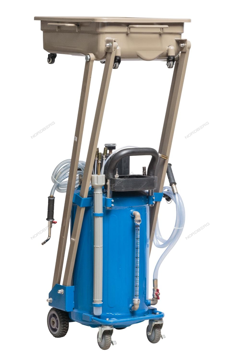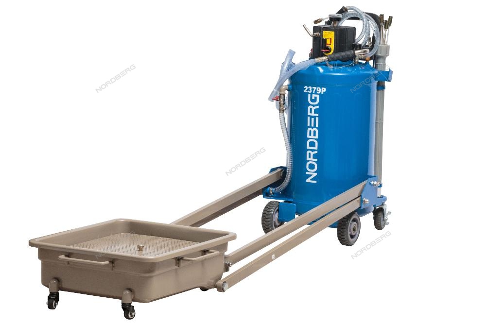 Установка для сбора масла с пантографом NORDBERG 2380P стальная емкость объемом 80 л, лоток 48 л., на колесах для удобства перемещения в помещении автосервиса, Сбор масла осуществляется путем подключении внешнего компрессора (поставляется отдельно).