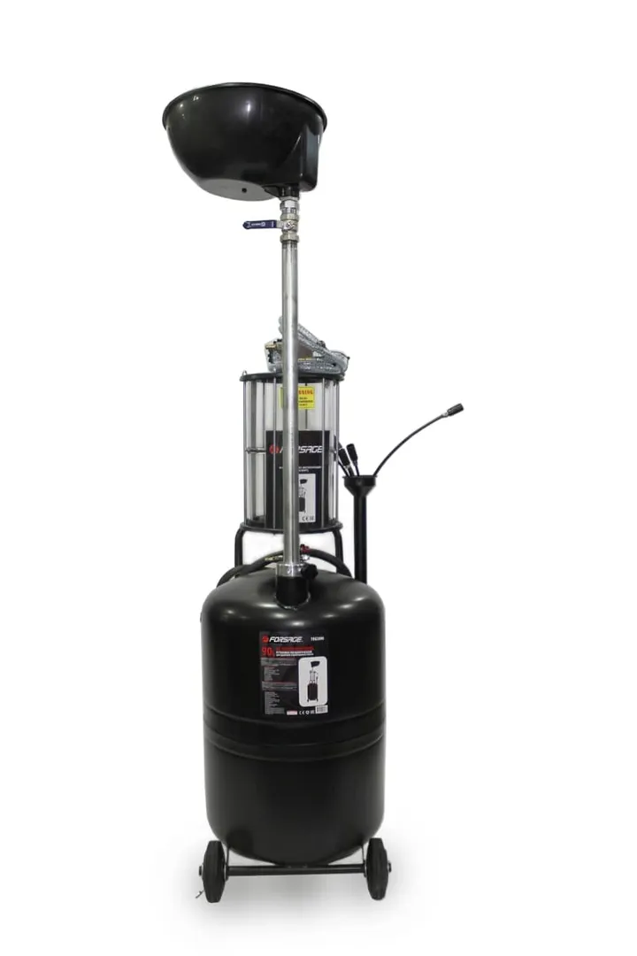 Пневматическая установка для сбора масла 90 л серая предназначена для удаления отработанного масла и других жидкостей из любого транспортного средства при помощи вентури-вакуумной вытяжной системы или свободным сливом. Используется как сливное устройство со свободным сливом отработанного масла из двигателей, коробок передач и дифференциалов всех транспортных средств. Установка портативна и проста в эксплуатации. Включает 5 гибких щупов для извлечения жидкости через отверстие щупа контроля уровня масла автомобиля. Регулируемая воронка для сбора масла может быть установлена на необходимой для работы высоте. Оборудование укомплектовано краном в воронке для сбора масла, для контроля состояния сливаемого масла перед началом слива в резервуар. Возможность самоочистки делает работу с устройством чистой и легкой. Осмотровая колба позволяет визуально оценить качество отработанного масла, имеющиеся недостатки двигателя и т.п.