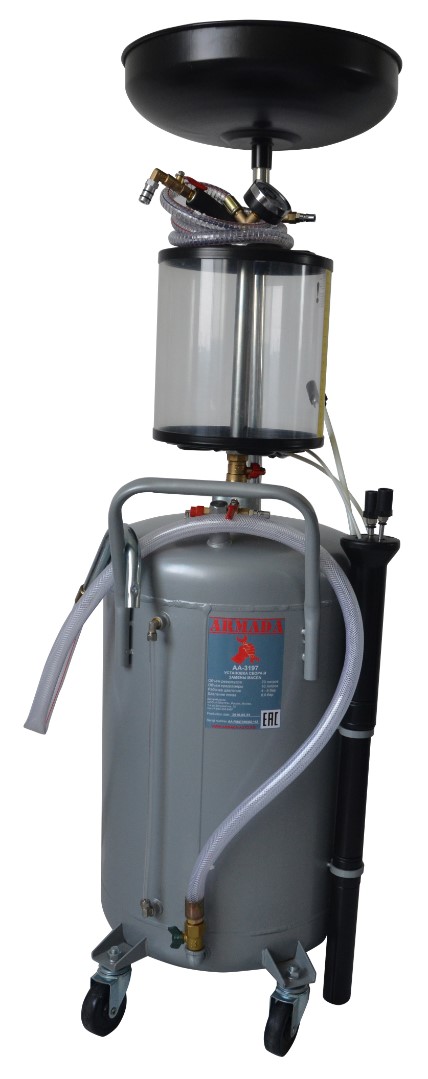 Установка АА-3197 дает возможность быстро удалить отработанное масло из двигателя или коробки передач автомобиля любой марки.