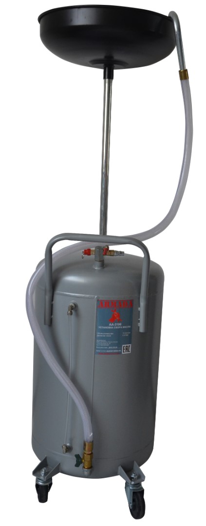 Установка АА-3198 предназначена для сбора отработанного масла в резервуар емкостью 70 литров через приемную воронку.