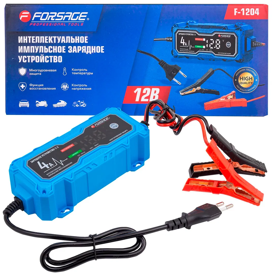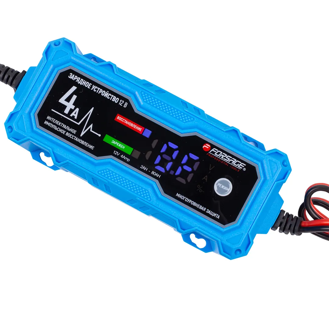 Автоматическое зарядное устройство для автомобильных аккумуляторов 12В с функцией импульсного восстановления и ремонта сильно разряженных и сульфатированных АКБ, цифровым дисплеем и сенсорным управлением. Яркий экран защищен защитной пленкой от царапин. Универсальное зарядное устройство для аккумуляторов автомобилей имеет 3-х уровневый микропроцессорный контроль зарядного устройства для аккумулятора автомобиля, подходит как для мотоциклов, скутеров, снегоходов, так и для грузовых и водных транспортных средств. Зарядка для автомобильного аккумулятора в машину позволяет восстановить сильно разряженные и сульфатированные АКБ. Зарядник адаптирует напряжение заряда к окружающей температуре. Автоматика защищает процесс заряжания от обратной полярности, искр, короткого замыкания и подключения без батареи, перенапряжения, перегрева и закипания электролита. Интеллектуальное импульсное зарядное устройство с LCD индикатором для свинцово-кислотных аккумуляторов с номинальным напряжением 12 вольт емкостью 2-80Ач. Подходит