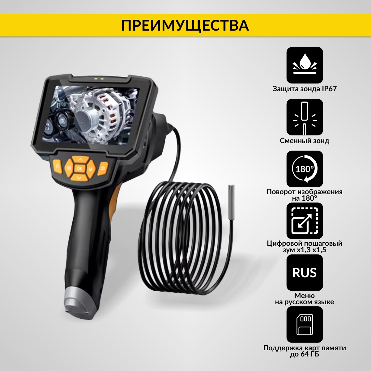iCartool IC-V112C промышленный видеоэндоскоп с зондом диаметром 3.9 мм и IPS-экраном с широким углом обзора диагональю 4,3". Это идеальный инструмент для эндоскопии узких пространств, имеющих малые входные отверстия. Широко используется в автомобильной индустрии и других сферах.