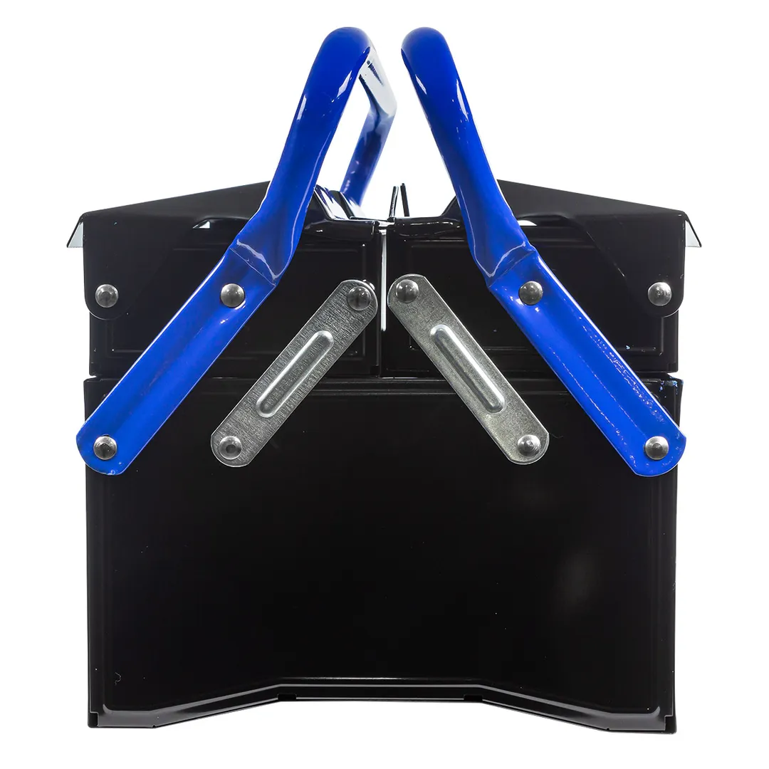 Ящик имеет пять раздвижных отделений, которые легко раскладываются и позволяют организовать пространство внутри ящика максимально эффективно. Благодаря удобной ручке, ящик можно легко переносить, а отверстия на створках позволяют зафиксировать их, чтобы предотвратить открытие ящика при транспортировке.
