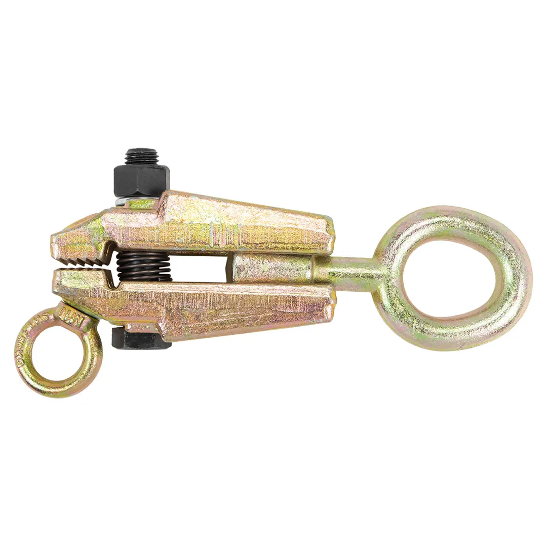 Захват для кузовных работ двух-функциональный. Захват применяется для рихтовочных работ с использованием стапельной системы. Особенность конструкции захвата: усиление затяжки увеличивает жим губ. Применяются для рихтовки и для кузовного ремонта автомобилей. С их помощью удается создать тяговое усилие для выправления вмятин и корректировки геометрии кузова. Их применяют как для стапеля, так и для ручных приспособлений типа обратного молотка, гидравлической растяжки и др. Технические характеристики: Поперечное усилие: 2 т; Продольное усилие: 5 т; Вид - двух-функциональный.