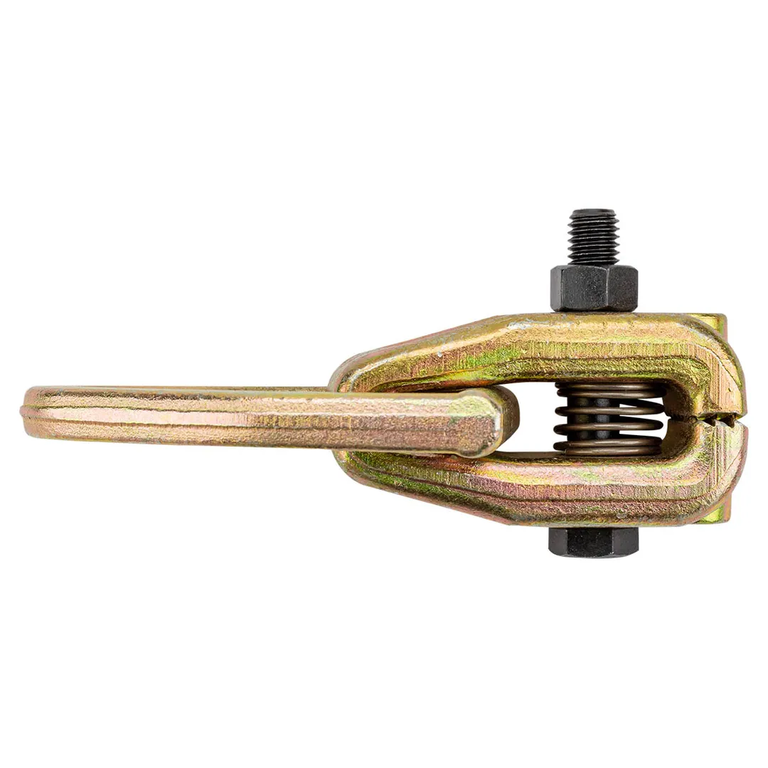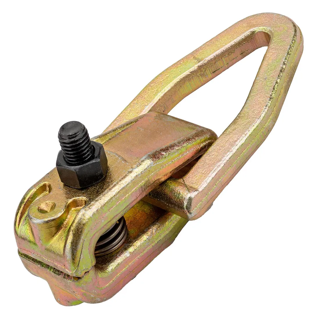 Захват для кузовных работ двух функциональный мини. Захват применяется при кузовных работах в автомастерских. Компактная конструкция позволяет работать в труднодоступных местах. Изготовлен из кованной хромомолибденовой легированной стали. Затягивается одним болтом. Захват применяется для рихтовочных работ с использованием стапельной системы. Особенность конструкции захвата: усиление затяжки увеличивает жим губ. Изготовлен из кованной хромомолибденовой легированной стали. Усилие : 3 тонны.