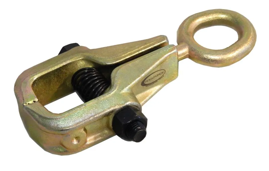 Однофункциональный захват для кузовных работ широко используется в автомобильных мастерских. Зажим изготовлен из высокопрочного металла, устойчивого к различным механическим воздействиям, что гарантирует его длительный срок службы. Небольшая поверхность захвата дает возможность применять его в труднодоступных местах. Специальное штампованное кольцо позволяет использовать его совместно с цепью.
