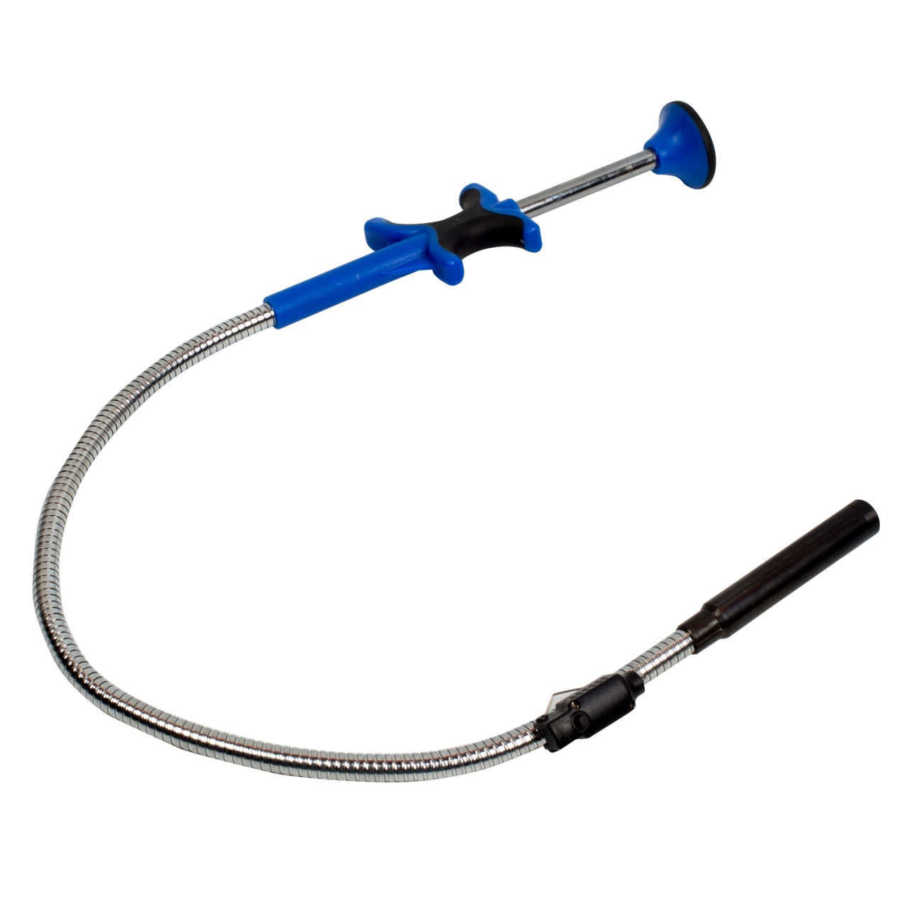 Магнитный захват на гибком стержне служит для извлечения металлических предметов из труднодоступных мест. Конструкция стержня позволяет с легкостью огибать препятствия. Подсветка рабочей зоны сокращает время поиска и способствует удобству работы.