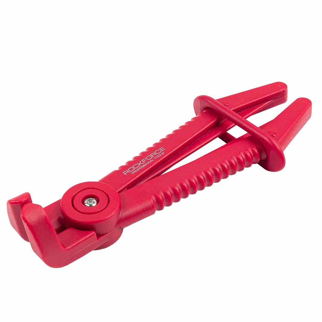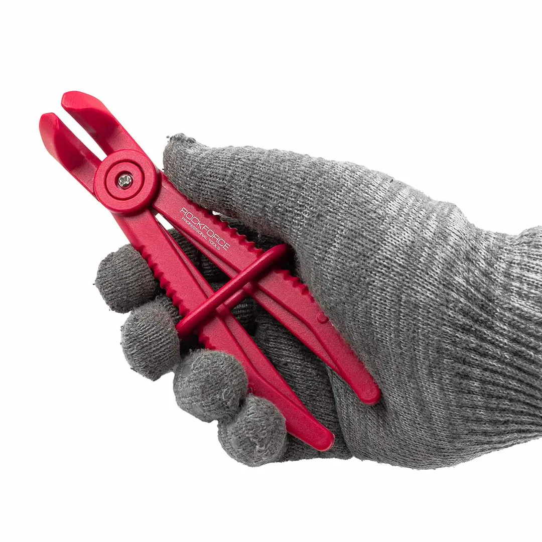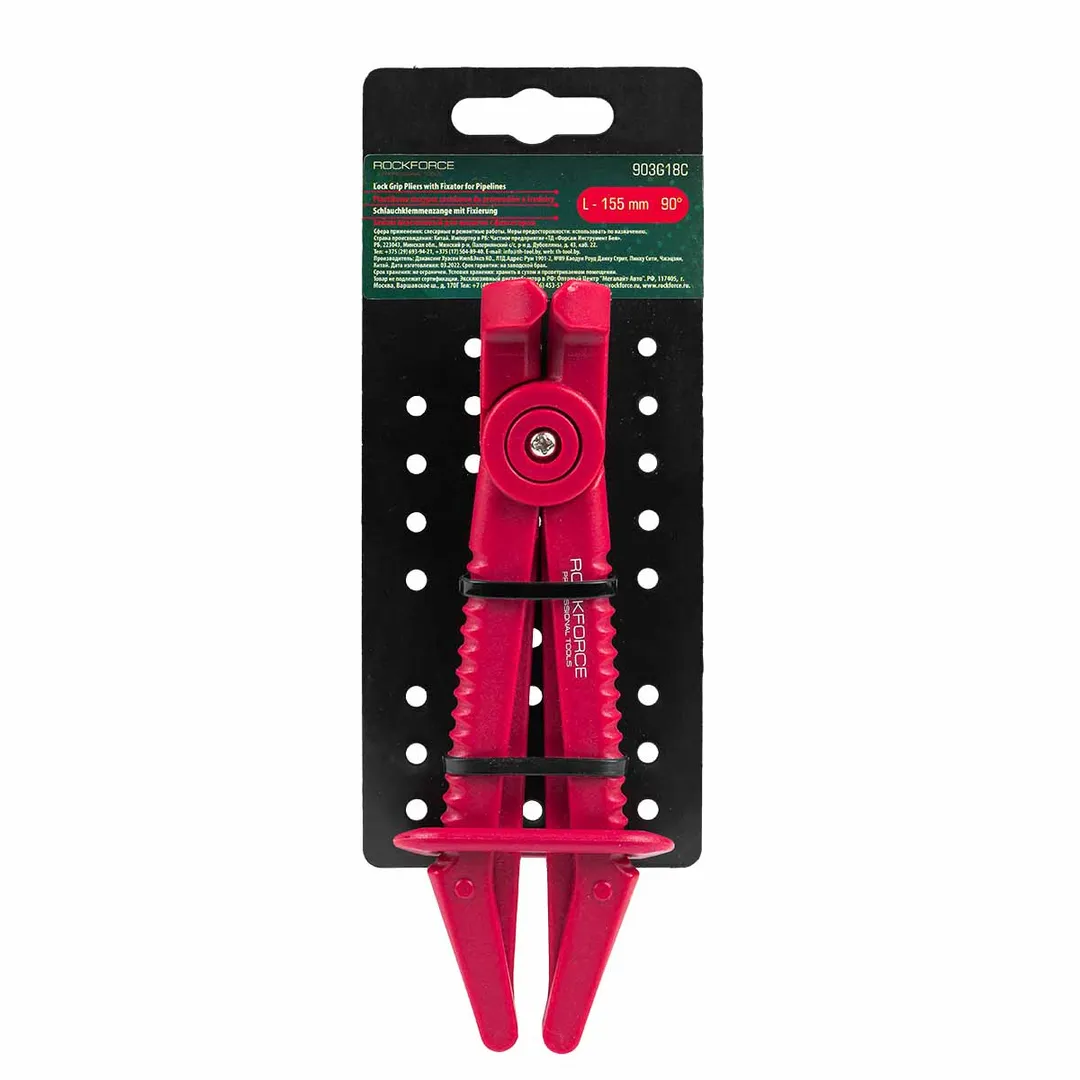 Зажим пластиковый для шлангов с фиксатором изогнутый 90° (L-155мм), на пластиковом держателе используется при ремонтных работах для пережатия шлангов тормозной и топливной систем, системы охлаждения и ГУР. Инструмент обеспечивает надёжное сжатие шлангов без их повреждений. Фиксатор на ручке позволяет зафиксировать зажим на шланге в зажатом состоянии. Зажимы выполнены из прочного нейлона, что гарантирует долгий срок их службы. Закруглённый рабочий профиль зажимных губок исключает повреждение шланга.
