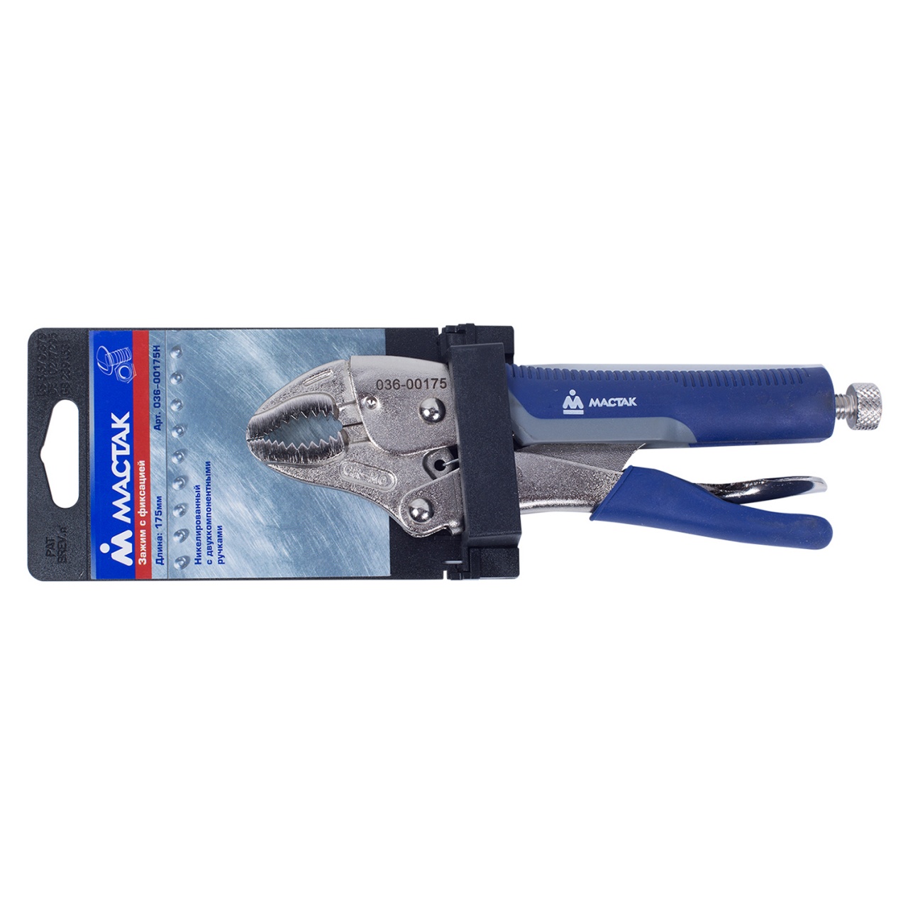 —Зажим с фиксатором 175 мм, фигурные губки МАСТАК 036-00175H